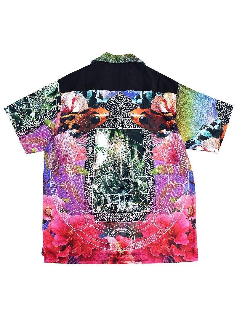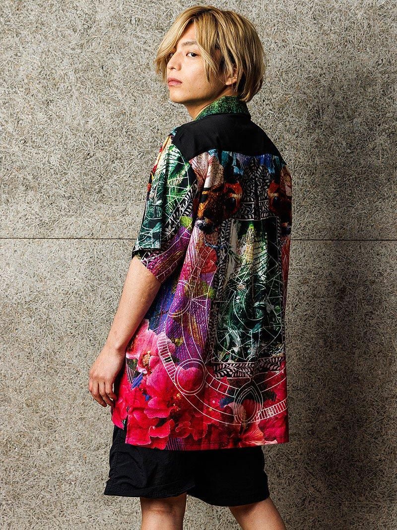 リラックスシルエットのオープンカラーシャツ。 リラックスシルエット。左ポケット仕様。 SIZE: S 着丈80身幅62肩幅50袖丈25(cm) M着丈82身幅65肩幅52袖丈26(cm) ※画像はサンプルです。実際の商品と柄の位置など若干変更になる可能性がございます、ご了承ください。