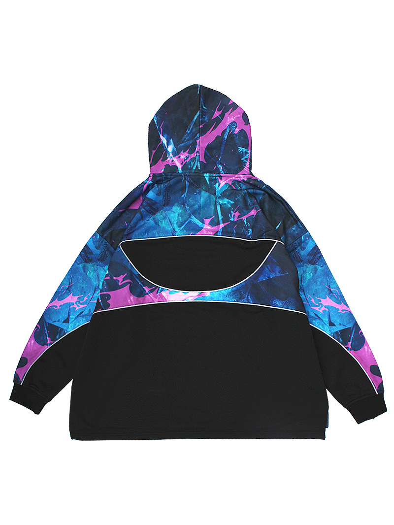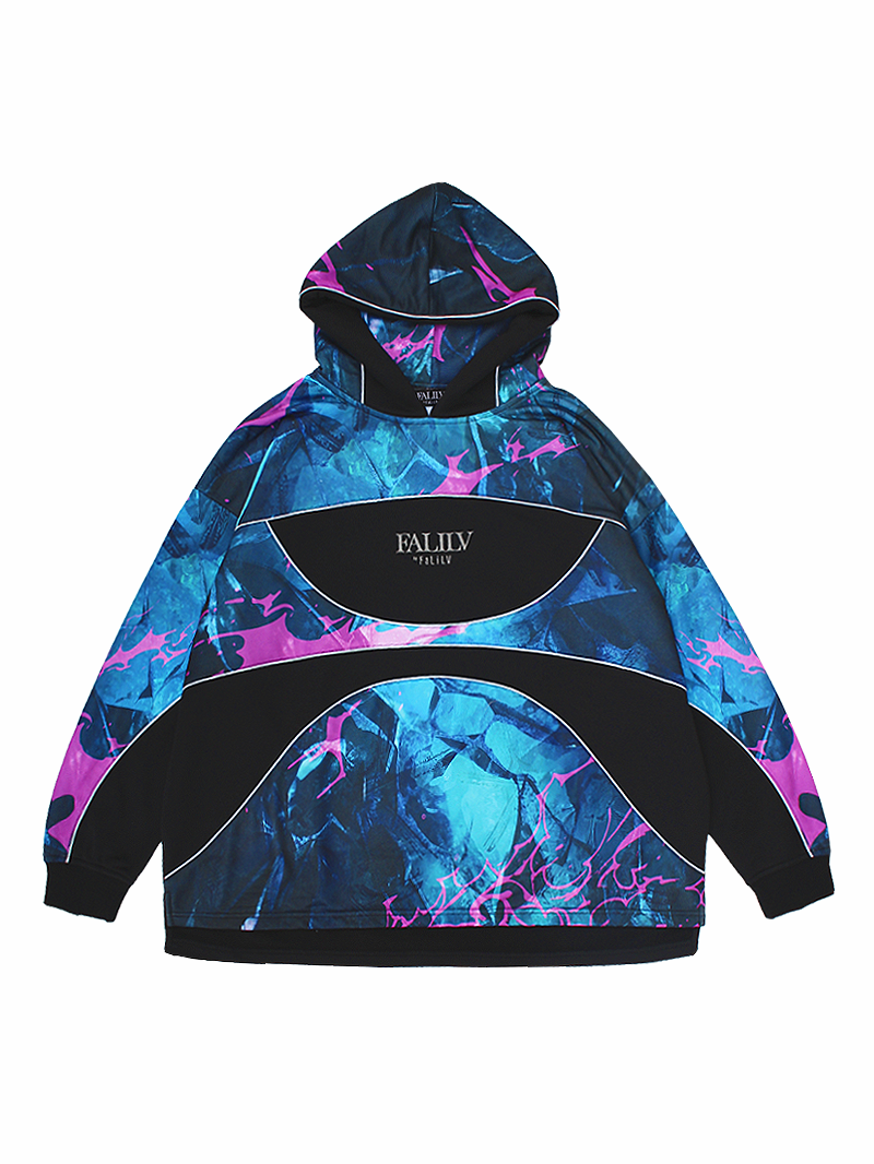 まるみを帯びた切り替えデザインが特徴的なプルオーバータイプのフーディ。